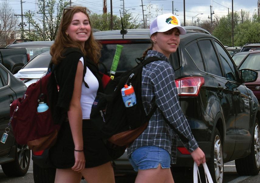 CHEESE Walking through the parking lot before school, Elizabeth Krieg, senior and Jenna Krieg, sophomore, dress up for country vs country club day. (photo by lauren hoogeveen)