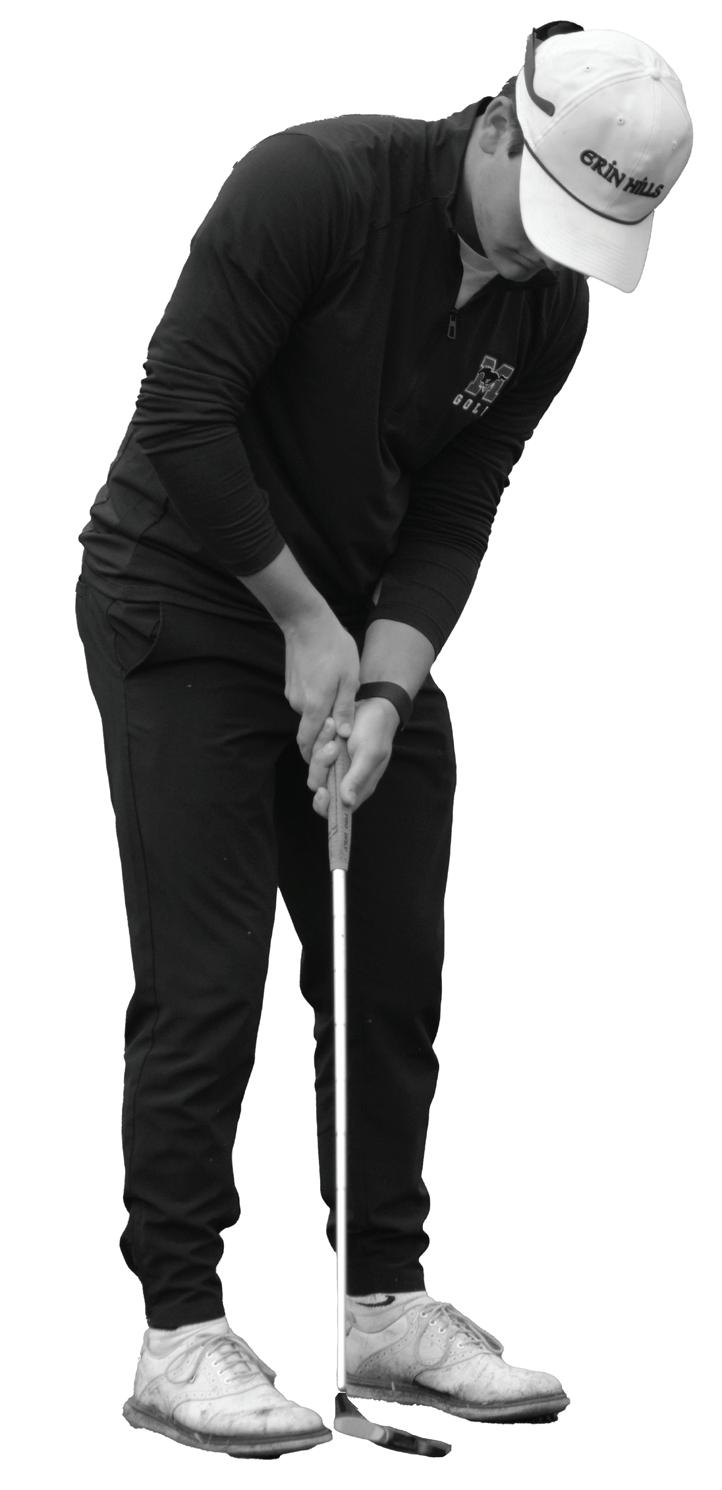 LESS IS BEST Putting the ball, Evan Bognar, senior, watches its course. “We are looking forward to competing in Saturday invites,” Bognar said. (photo by viv rodriguez)