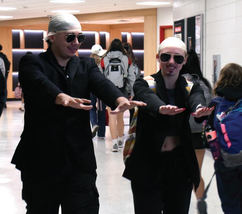 DONT STOP THE PARTY Dancing through the halls, Joaquin Magallanes and Gillian Farley, navigate their way to second period both dressed as Pitbull. (photo by marianna young)