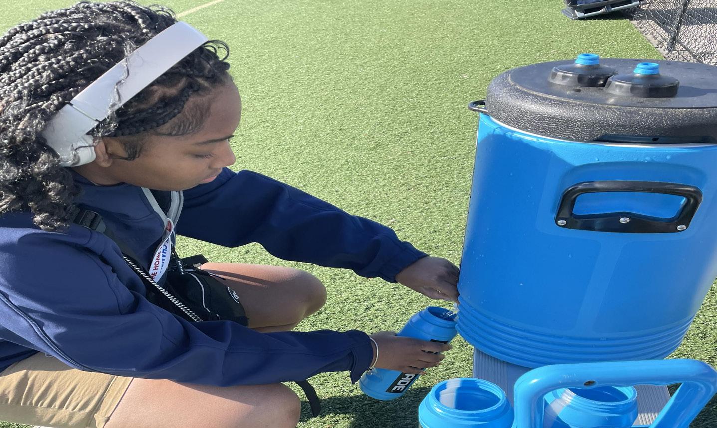 The sports medicine program is run by a total of four athletic trainers from many different backgrounds: Jeff Hopp, Erika Davis, Emily Rivera and Alli Bird. A part of this team is also a group of orthopedic specialist from the Wellstar Pediatric Orthopedic Care Center. Sports medicine provides quality healthcare to all Marietta athletes, regardless if they attend MHS or not. With a total of 24 members, consisting of sophmores and juniors. The team partakes in sports practices and games, providing water, snacks and the highest quality of care to its athletes. The program also offers health insurance to all of its athletes, allowing for any student to participate in athletic activities. Freshman Malia Moore, a first year member of sports medicine, said the program has benefitted her very much, and when asked what sports medicine is, she shares that it is much more than just the program.