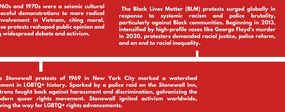 Protests play a crucial role in democratic societies by triggering change, bringing underrepresented voices to the fore, and holding institutions responsible. They may encounter opposition or suspicion, but their historical significance and ongoing influence are undeniable. Protests continue to be a potent instrument for advancing social justice, equality, and human rights as we negotiate the complexity of the contemporary world. Protesting is a dynamic force that has the power to bring about revolutionary change in societies all around the world, not merely a show of unhappiness.