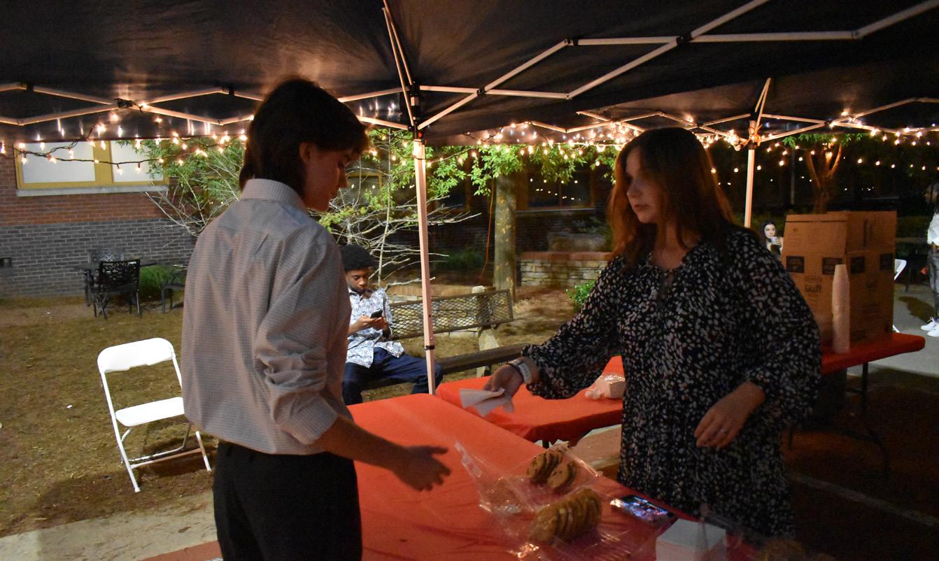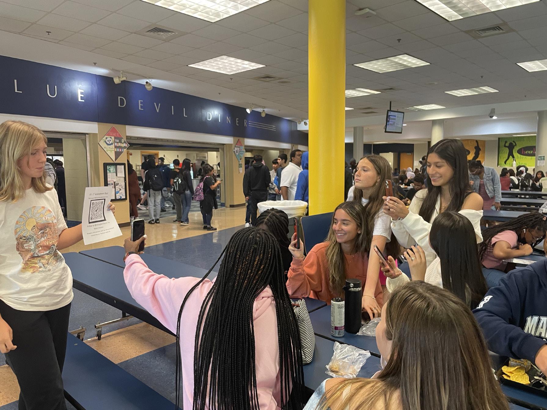 Students scan a QR code to take the First Amendment quiz. Students who took the quiz were entered into a random drawing to win a Zaxby’s gift card. Photo by Aidan Allegro