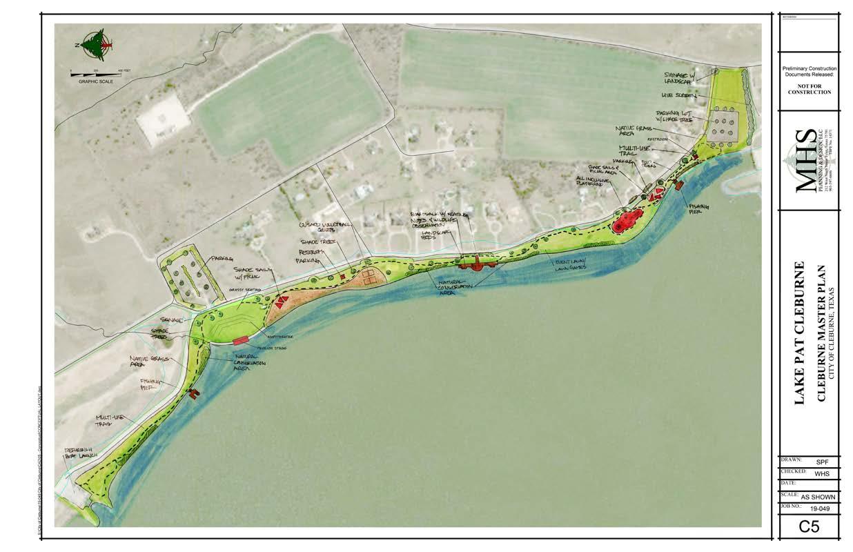 Lake Pat Cleburne is an asset to the entire City and surrounding areas. The lake is used primarily for fishing but is open for skiing, boating, swimming, kayaking, canoeing, etc. To better understand the needs for this specific site, a citizen survey was conducted and MHS developed two conceptual Site Plans and presented them to the City for comments, questions and concerns.