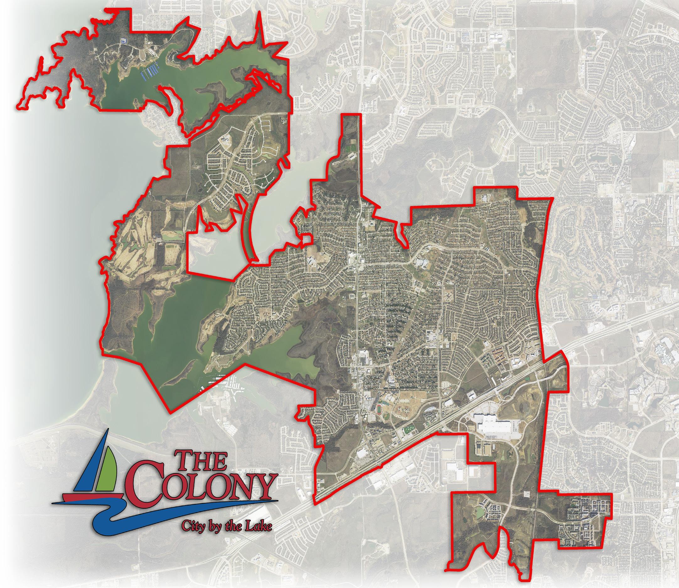 The City is surrounded by Frisco to the north, Plano to the east, Carrollton to the south and Lewisville to the southwest. The Colony is bordered to the west by Lewisville Lake and approximately 26 miles of shoreline are positioned within the city limits. Lewisville Lake is a flood control lake that provides a natural habitat for various native plants and animals and an abundance of recreation opportunities for citizens and visitors. In addition, the lake provides eco-system services such as wildlife habitat areas, nutrient cycling and flood protection. The Colony has numerous streams and tributaries that run through the City; three notable creeks are: Indian Creek, Stewart Creek and Office Creek.