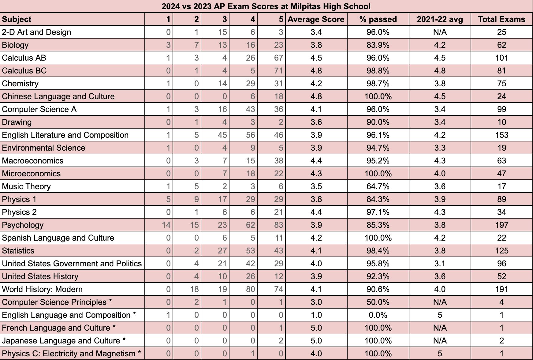 *course and exam not offered at MHS. Certain exam scores are projected/pending. Data Courtesy of Jennifer Hutchison.
