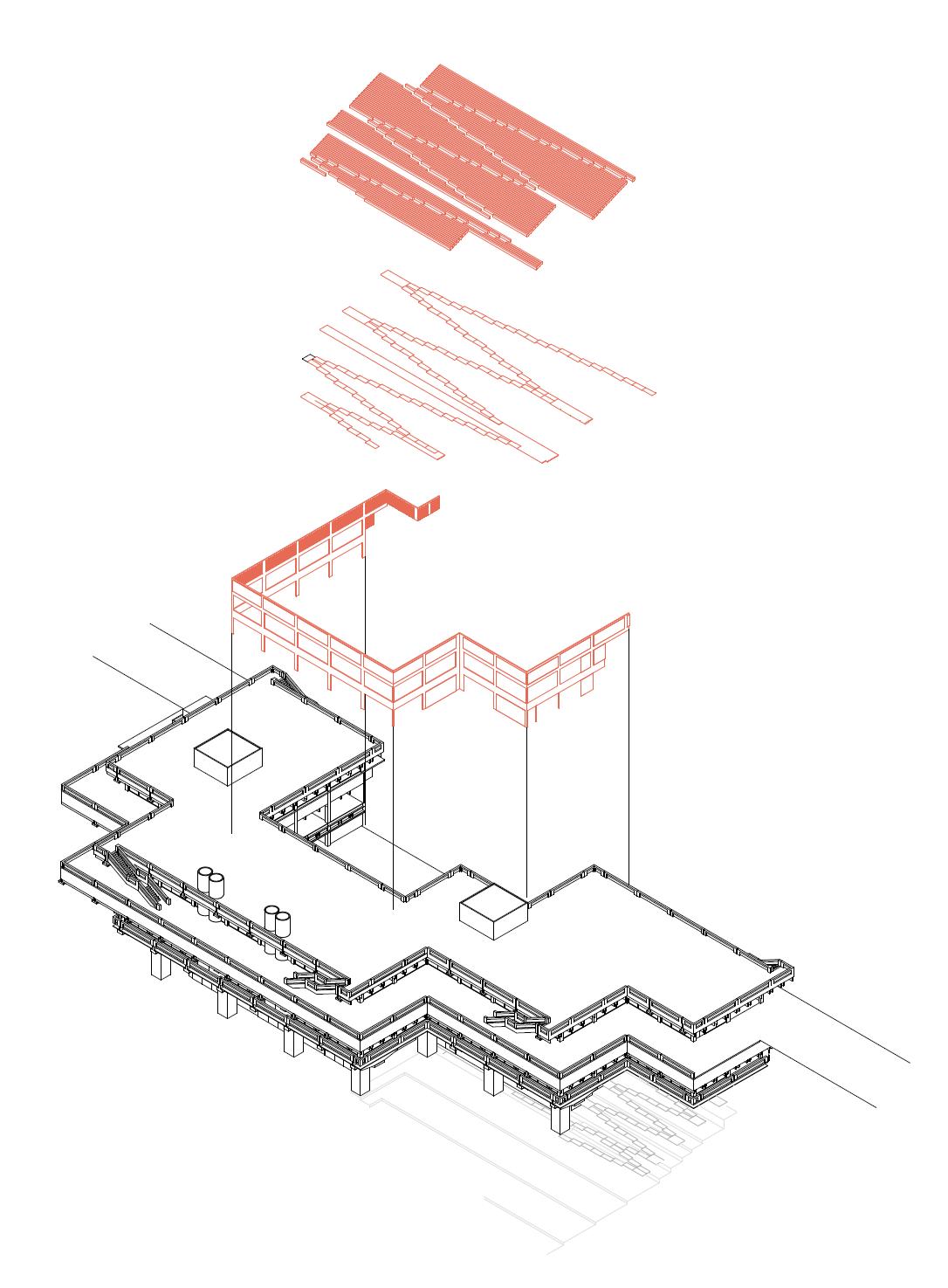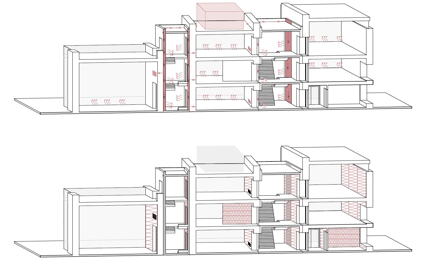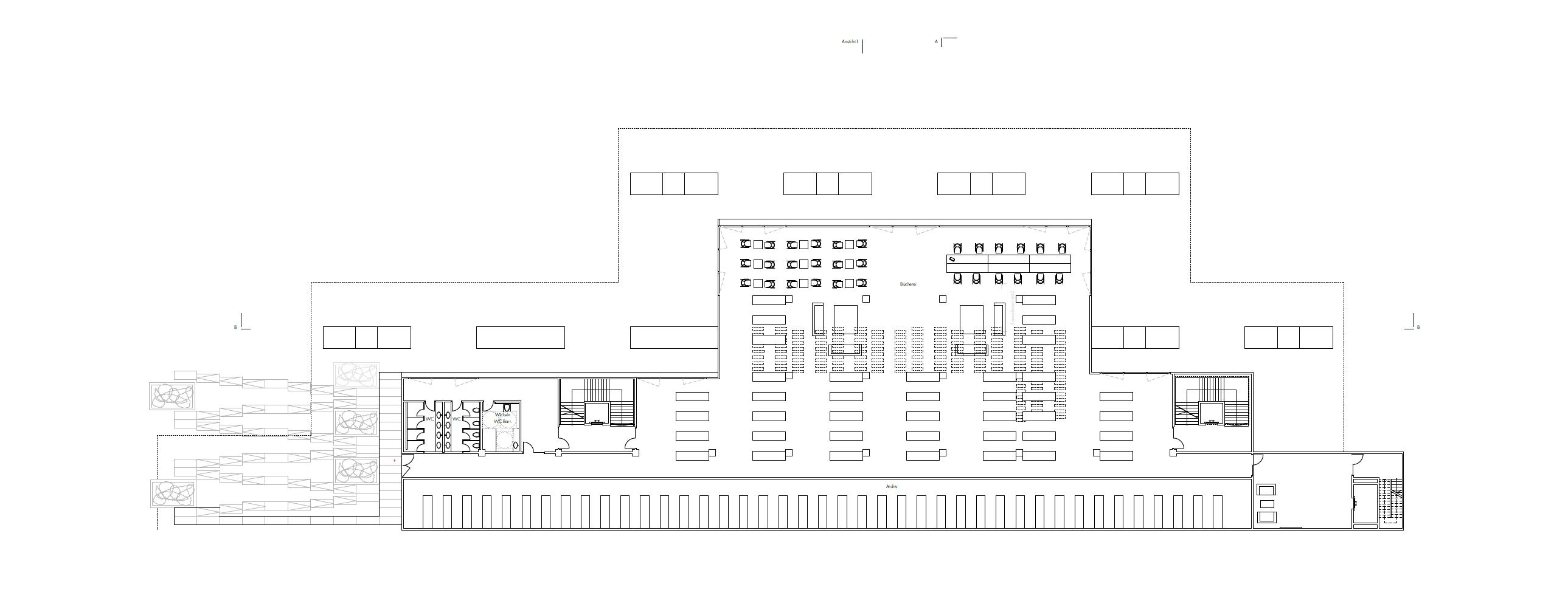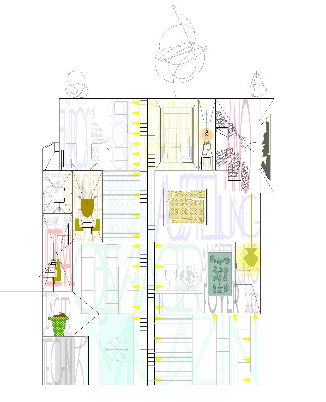 The brutalist congress center in Bad Gastein is known as a lost place. By opening the building on the slope side in a southerly direction, the quality of the historic building is intended to be visible to the public. The large barrier-free staircase offers a special view of the existing building, offers unique situations with small inner courtyards and separate entrances and creates a public outdoor area with a panoramic view. Due to the strong contrast caused by the material, the intervention stands out clearly from the existing structure and thus does not distort the history. The new concept for the building includes a use for residential artists but also the public. Large studio rooms, residential units and exhibition rooms can be flexibly connected and separated in order to be able to react to the individual needs of the artists. while the public areas are arranged to be easily accessible, revitalizing the building and at the same time providing a retreat for the artists.