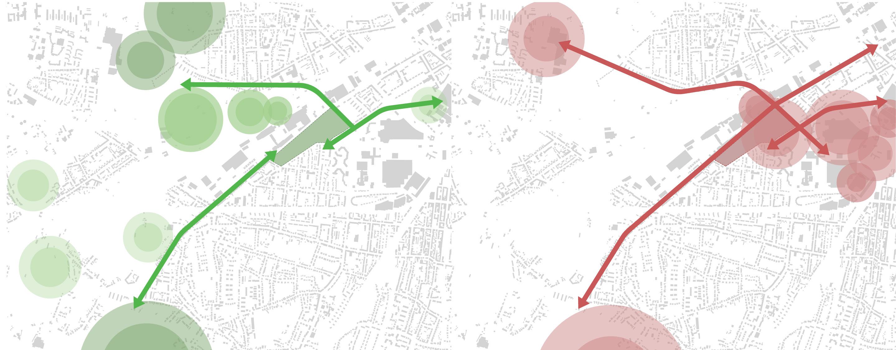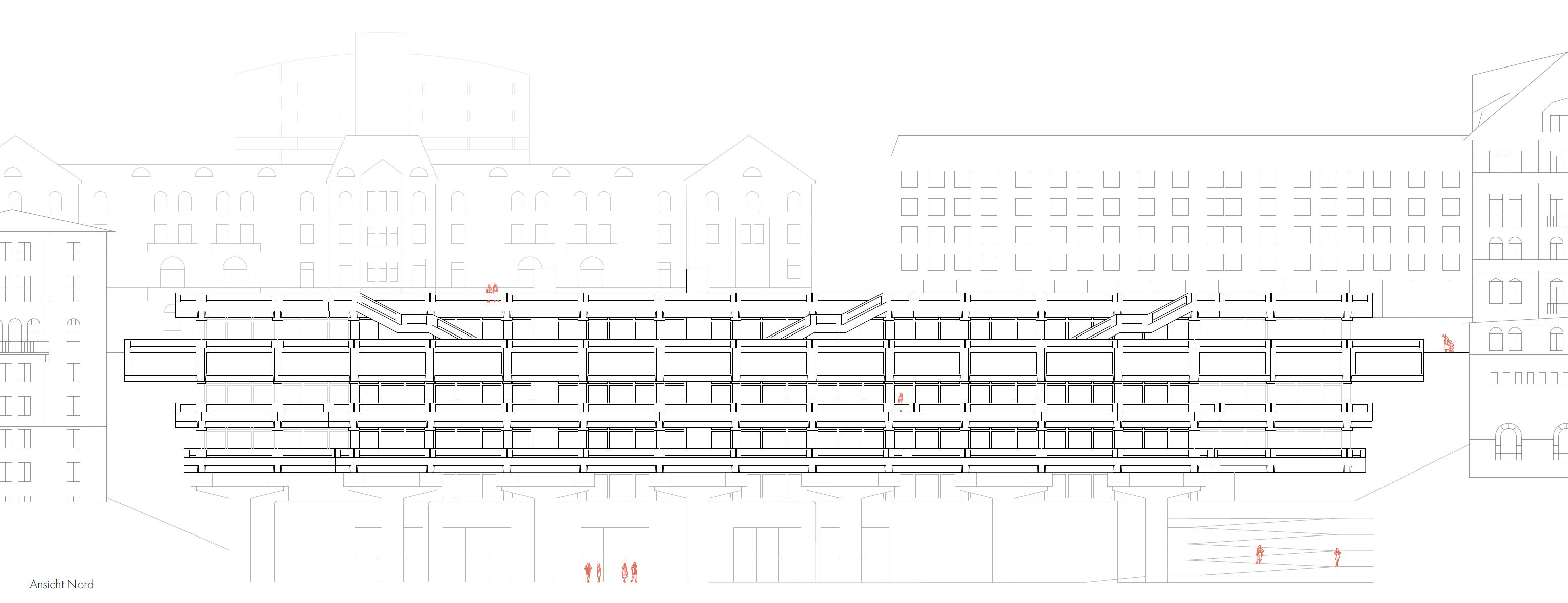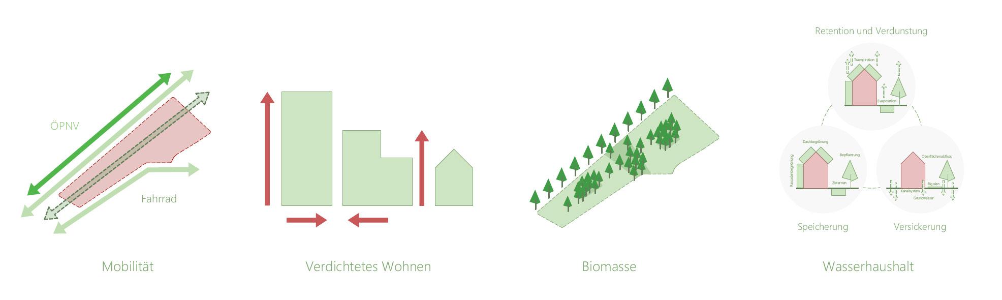 the design is based on the question of how existing urban structures can be used to exploit potential for future-oriented neighborhood development in the area of housing construction and open space networking. here, current issues of sustainability (social, ecological and economic) are combined by linking the need for socially mixed living space to the conditions of a green-connected neighborhood and developing a unity from this. we see the city as a combination of spheres of activity that consist of high-quality living and working space and, in their interplay, offer a home worth living in for everyone. at the heart of this is a combination of dense living space, surrounded by public and private open space and bound by a long-term functional and ecologically valuable development concept.