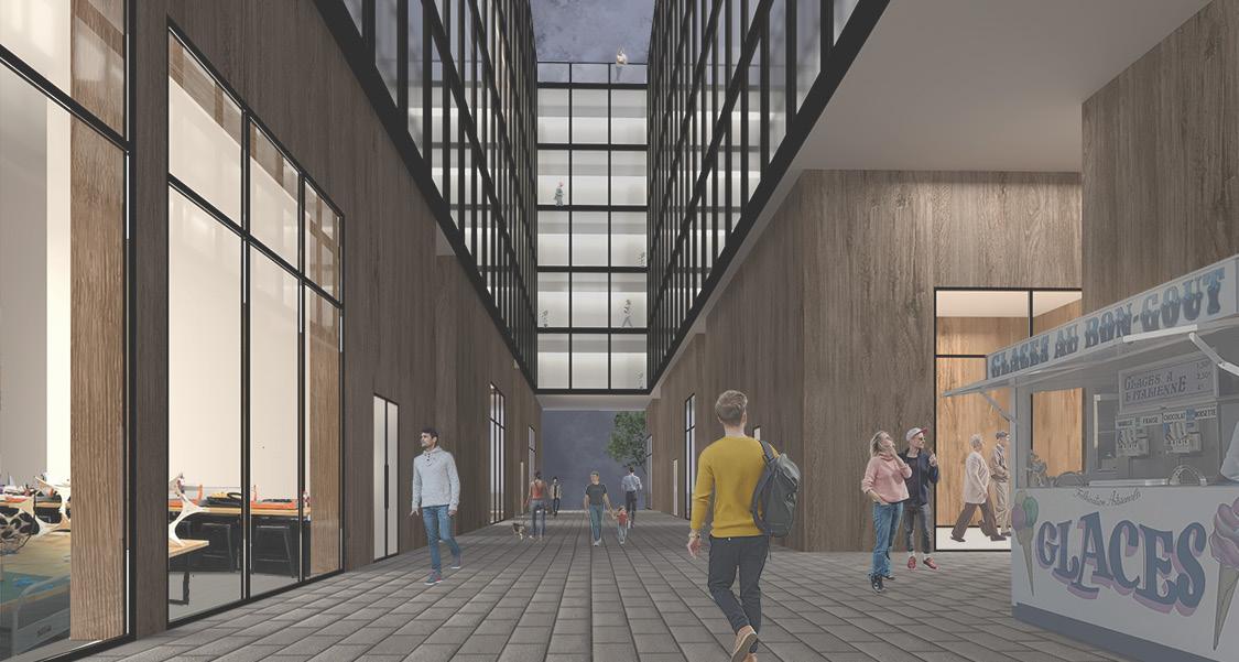 De plus, le site est caractérisé comme un désert alimentaire, donc la notion de l’auto-dépendance est mise en avant avec le développement de solariums qui servent d’entrées aux immeubles d’habitation. Ces espaces contiennent une zone d’agriculture et seront gérer par un système de gouvernance collective. Ils sont utilisés comme une zone de sensibilisation à l’agriculture des résidents et permettent de former des relations sociales entre les habitants.