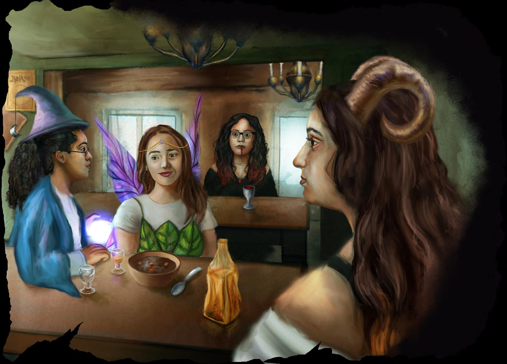 • Single Illustration, hand-drawn: 2nd place, “Mercury vs. Psyche” by Crystal Ortiz, p.11
