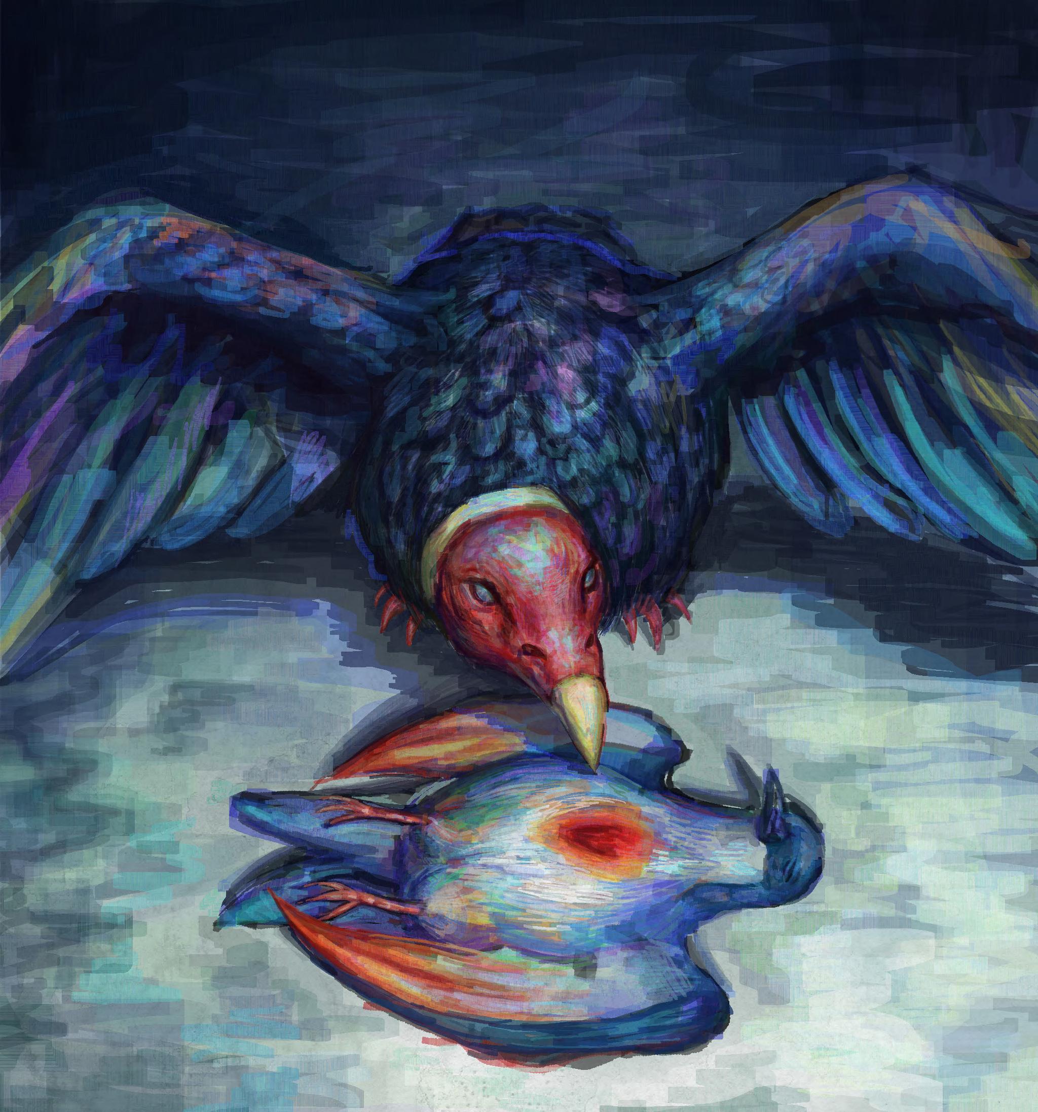 The voice of my lover called, intending to awaken me from the peace we had worked so hard to attain, but her voice dragged me from my sleep into the sandstorm, where I could only see the blue butterflies and the flowers growing from the open rib cage of my beloved. Her screams of pain crawled from her tongue and spoke to me in a pleading tone, begging for an escape from the ghost possessing their master and taking their words to the depths of my mind.