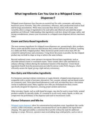 Miami Magic Infusions Australia is a leading Australian supplier of premium whipped cream chargers, nitrous oxide (N₂O) cylinders, cream dispensers, soda siphons, and other culinary accessories used in restaurants, cafes, bars, bakeries, and home kitchens. Their products are aimed at enabling efficient whipping, flavor infusion, and culinary creativity. They emphasize high-quality, culinary-grade gas, recyclable steel chargers, competitive pricing, and broad usage in food & beverage applications.