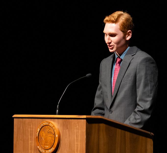 Speaking for myself, since no one else from MCDS is going to Case Western Reserve, I won’t be seeing any of you on a day-to-day basis. However, I do plan to keep in touch and see you when we return home on breaks, and will look forward to also coming to see and support the Swimming and Water Polo matches, and of course the CME performances as well! In general, let us not forget everything that we have gone through as a class, the joys, sorrows, and lessons. Let us not lose contact with our friends, teachers, and mentors. And most importantly, let us use what we have learned at Miami Country Day to make an impact and bring about meaningful change in society. have the utmost confidence in us and know that each of us has a bright future ahead of us. Thank you to everyone for making my experience at Country Day incredible these past 7 years. I will miss you greatly!