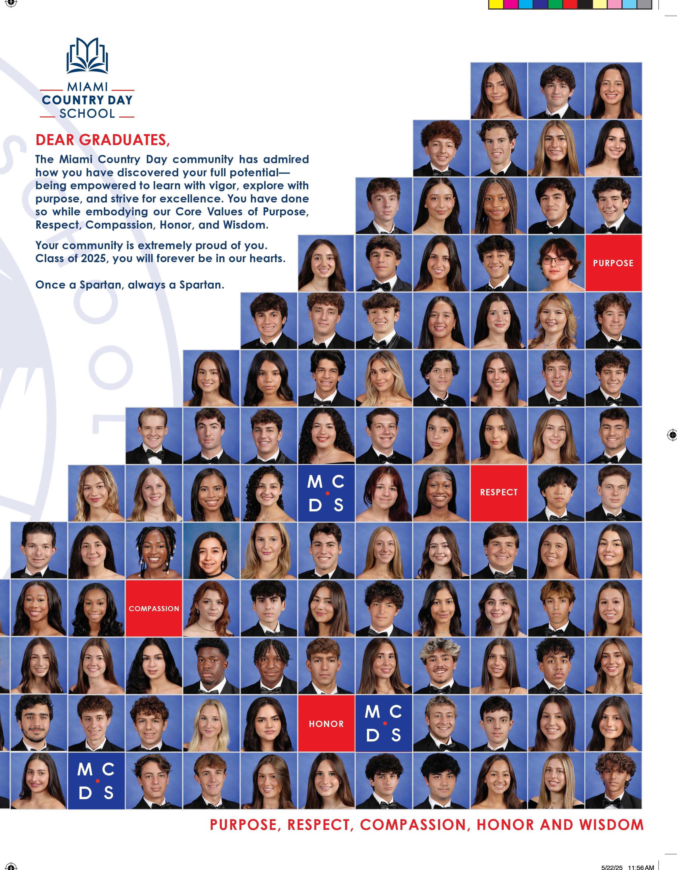 The Arscht Center provided the grandeur befitting the Class of 2025 and their proud family and friends as we welcomed our newest alumni to their next chapter at MCDS. The following pages will help you relive those magical moments and I know this issue will become a special keepsake for each member of the Class of 2025 and their families.