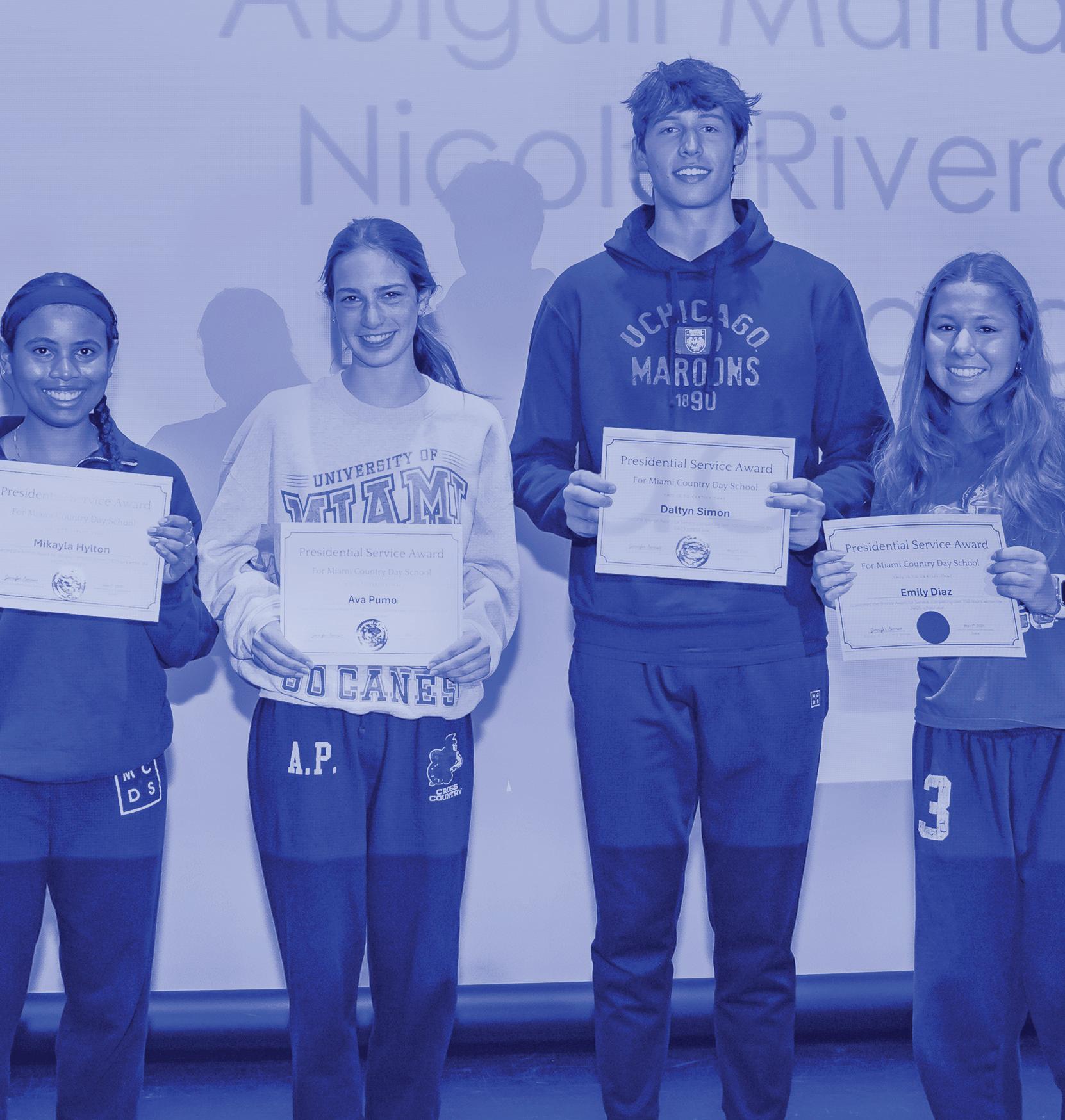 It’s my honor today to present an award that reflects the very heart of what Miami Country Day School stands for, service, leadership, and making a difference far beyond these campus walls.