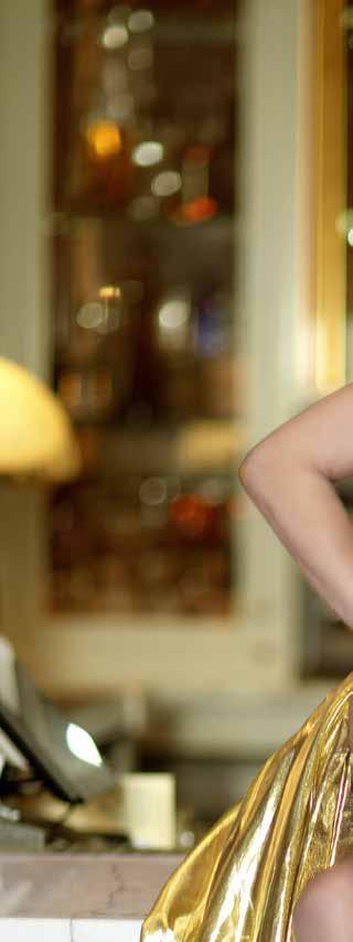 After we finished shooting our favorite look, which was the gorgeous gold gown by TA Couture that’s on the cover (for a good reason!), we challenged her to sit at the top of the bar, and she fearlessly responded: “! Of course!”