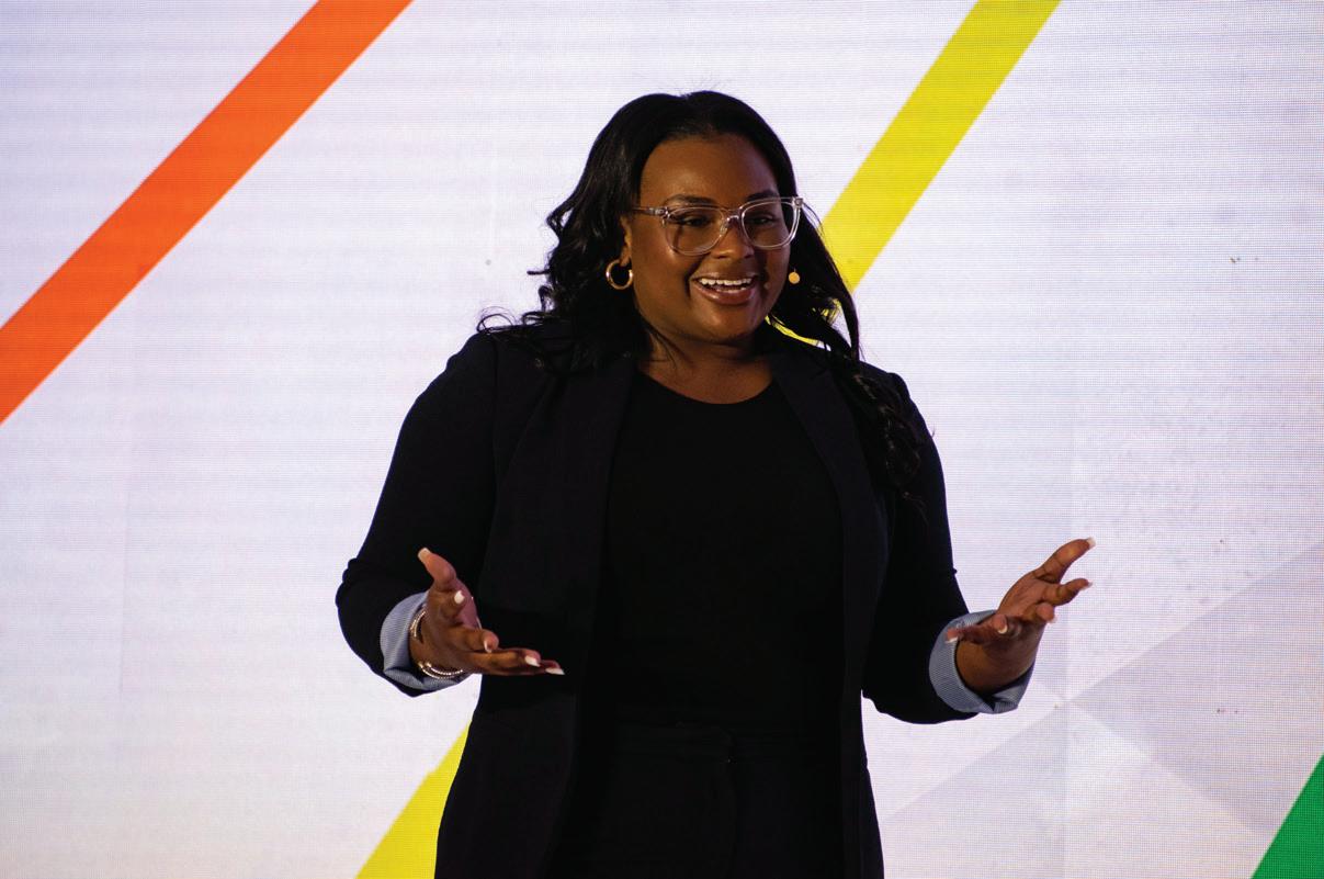 Alex Carnochan //Photo Editor Student Government President Jamie Williams-Smith opens the foor for President Frenk at the State of the University address on Sept. 15 at Shalala Student Center.
