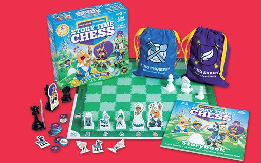 Available at Target, Amazon and StoryTimeChess.com for under $50 this is the only game in the world that teaches children as young as three years old how to play chess. Strengthen your chess skills and deepen your understanding of the game, one silly story at a time! Through Story Time Chess, kids develop a well-rounded set of skills (literacy, communication, emotional intelligence) that promote chess-specific growth, along with academic success and personal confidence.