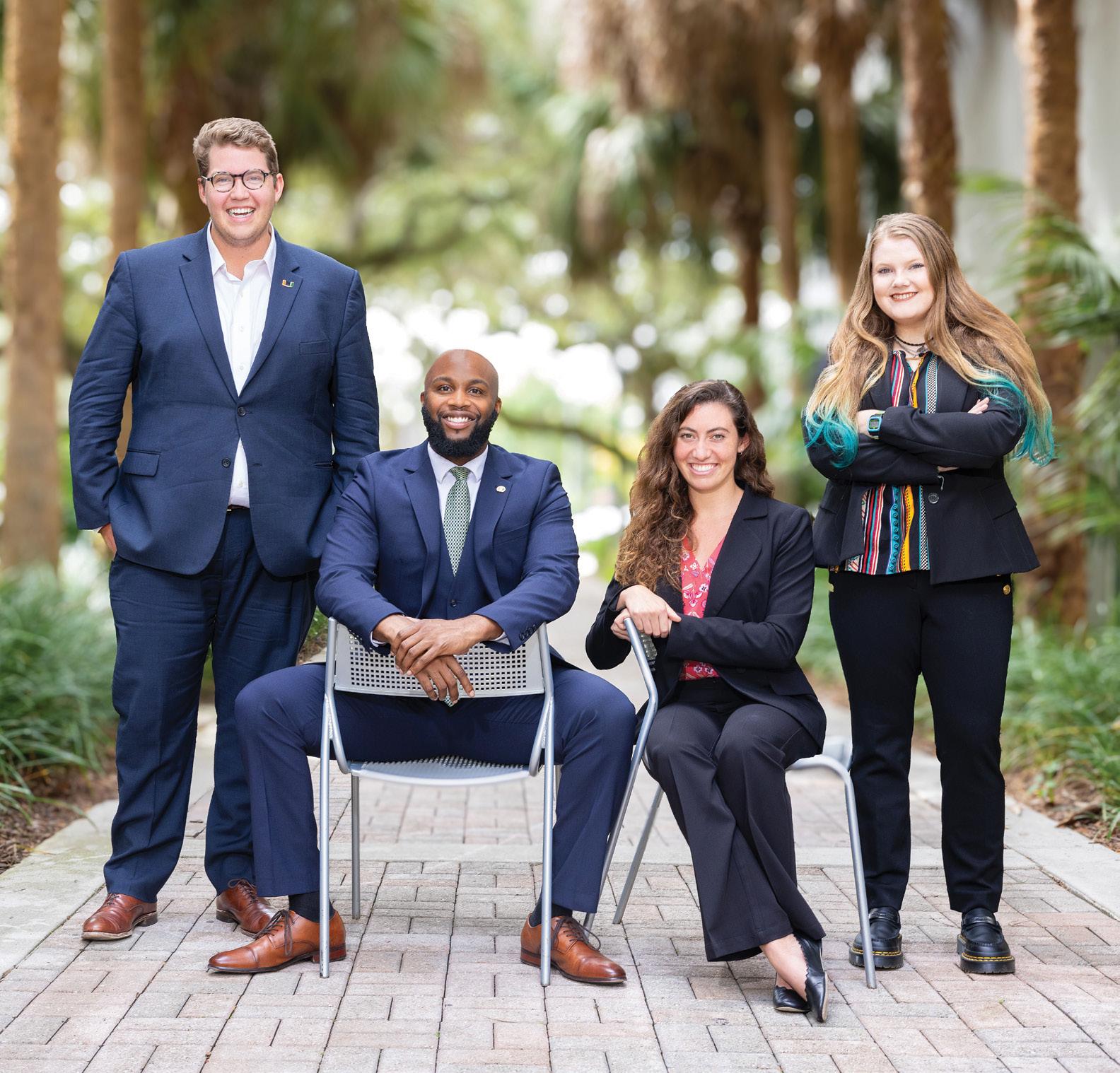 Jordan Brooks, Randy Fitzgerald, Gabriella Kayal, and Delaney Reynolds are pursuing multiple advanced degrees and interests across the schools and colleges of the University of Miami in medicine, business, history, and science.