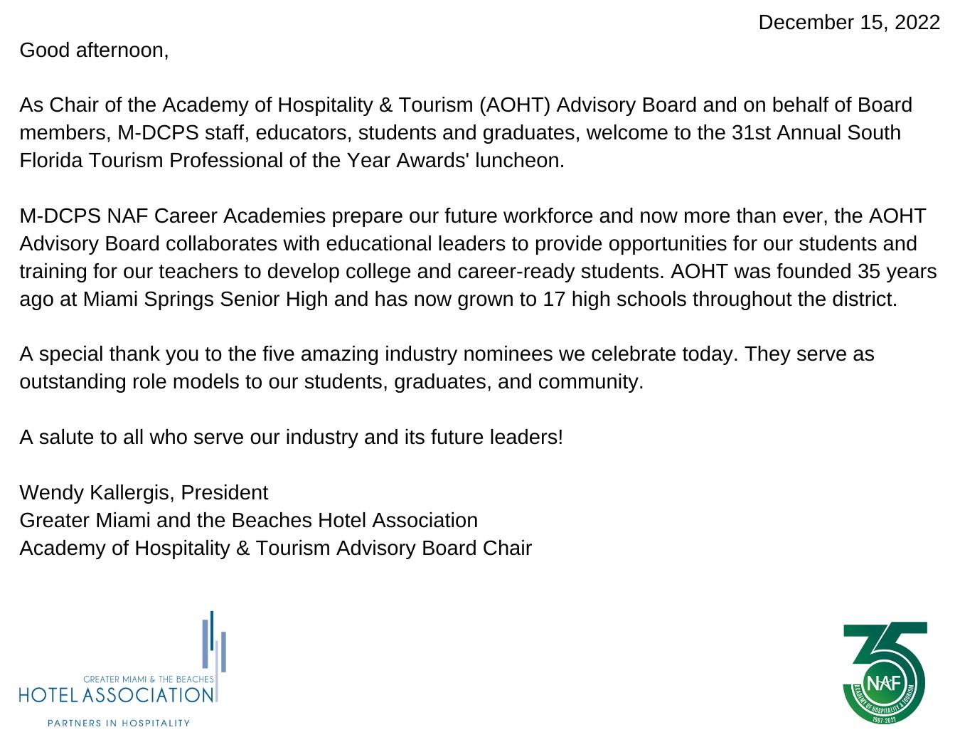 The 31st Annual South Florida Tourism Professional of the Year Luncheon