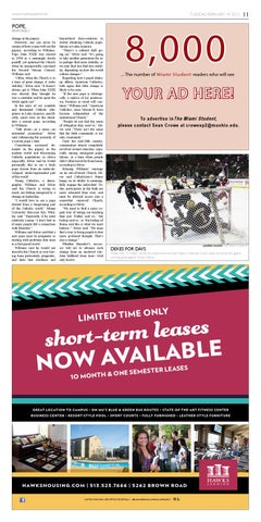YOUR AD HERE! To advertise in The Miami Student , please contact Sean Crowe at crowesp2@muohio.edu.