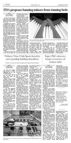 “Withrow Court was built back in the 1930s and needed millions SOPHIE WHORF THE MIAMI STUDENT of dollars worth of upgrades,” Cady said. “It was going to cost For senior Jake Cottingim, too much money to repair Withbeing president of Miami’s row, so the final decision was to Weightlifting Club has made tear it down.” his Miami experience. Cady says the varsity ten“I love it because, like any nis, golf and baseball teams, other club sport, you can which were originally connect with people with based out of Withrow, have similar interests.” found temporary homes. However, with the pending Although Miami’s club sports demolition of Withrow Court, programs will soon have a which currently serves as a prac- new place to call home as well, tice facility for approximately 25 many teams are disheartened of Miami’s 50 club sports teams, by the demolition, as it will demany organizations like the stroy much more than just an Weightlifting Club will be per- 85-year-old structure. manently displaced by the end of “Everyone is upset the gym is this school year. being torn down because it repre“I was really disappointed sents a culture and a home base,” that Miami isn’t building an- said Cottingim. “That gym holds other space like that,” said a lot of memories. There are reCottingim. “They’re giving cords and signatures written on us the Chestnut Field House, the walls by past members and but it’s not the same.” presidents. It has a lot of sentiSenior Lindsay Schweitzer mental value.” agrees. Schweitzer is the current The Weightlifting Club will president of the Gymnastics Club transition to the Chestnut Field and has been an active participant House, which is located near the since her freshman year. old Talawanda High School. The “We were fighting [the demoli- Gymnastics Club will move to tion of Withrow] from the start,” Sawyer Hall, an abandoned waresaid Schweitzer. house behind Peabody Hall on Steve Cady, senior associ- Western Campus. ate athletic director, said WithSchweitzer credits Mike Arnos, row — a building that lacks air senior director of programs & conditioning and needed heat- academic partnerships at the Recing and plumbing repairs — reation Center, with assisting the was beyond reconstruction. club sports in finding new homes