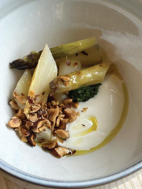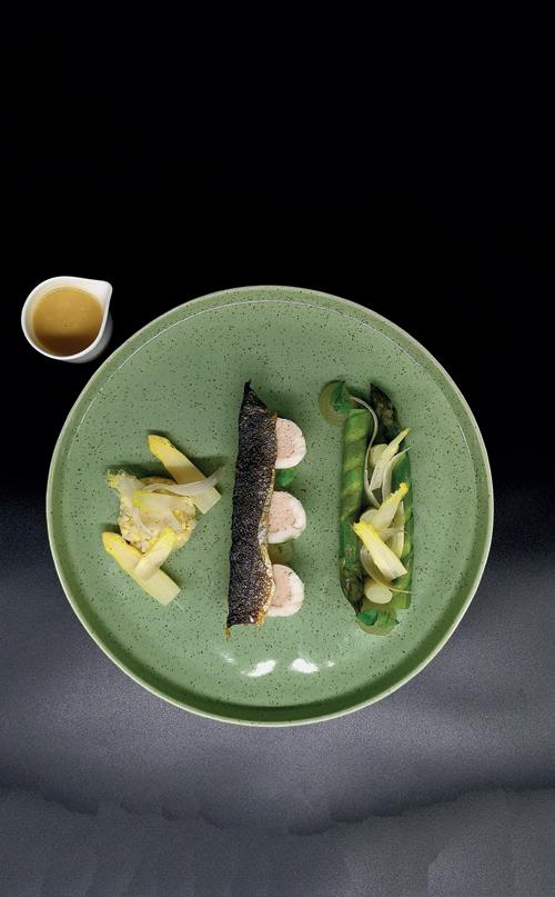 Brochet du lac en double texture, asperges déclinées, sauce entre tradition et Asie
