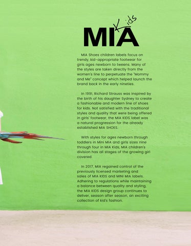 MIA Shoes children labels focus on trendy, kid-appropriate footwear for girls ages newborn to tweens. Many of the styles are taken directly from the women’s line to perpetuate the “Mommy and Me” concept which helped launch the brand back in the early nineties. In 1991, Richard Strauss was inspired by the birth of his daughter Sydney to create a fashionable and modern line of shoes for kids. Not satisfied with the traditional styles and quality that were being offered in girls’ footwear, the MIA KIDS label was a natural progression for the already established MIA SHOES. With styles for ages newborn through toddlers in Mini MIA and girls sizes nine through four in MIA Kids, MIA children’s division has all stages of the growing girl covered. In 2017, MIA regained control of the previously licensed marketing and sales of MIA KIDS and MINI MIA labels. Adhering to regulations while maintaining a balance between quality and styling, the MIA KIDS design group continues to deliver, season after season, an exciting collection of kid’s fashion.
