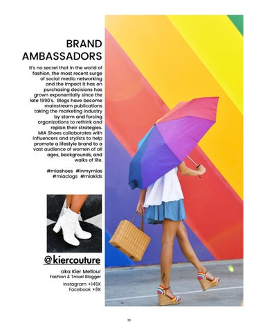 BRAND AMBASSADORS It’s no secret that in the world of fashion, the most recent surge of social media networking and the impact it has on purchasing decisions has grown exponentially since the late 1990’s. Blogs have become mainstream publications taking the marketing industry by storm and forcing organizations to rethink and replan their strategies. MIA Shoes collaborates with influencers and stylists to help promote a lifestyle brand to a vast audience of women of all ages, backgrounds, and walks of life. #miashoes #inmymias #miaclogs #miakids