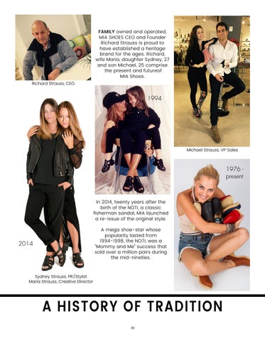 FAMILY owned and operated, MIA SHOES CEO and Founder Richard Strauss is proud to have established a heritage brand for the ages. Richard, wife Maria, daughter Sydney, 27 and son Michael, 25 comprise the present and futureof MIA Shoes. Richard Strauss, CEO