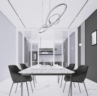 Kitchen and Dining area with a clean, minimalist look that emph-