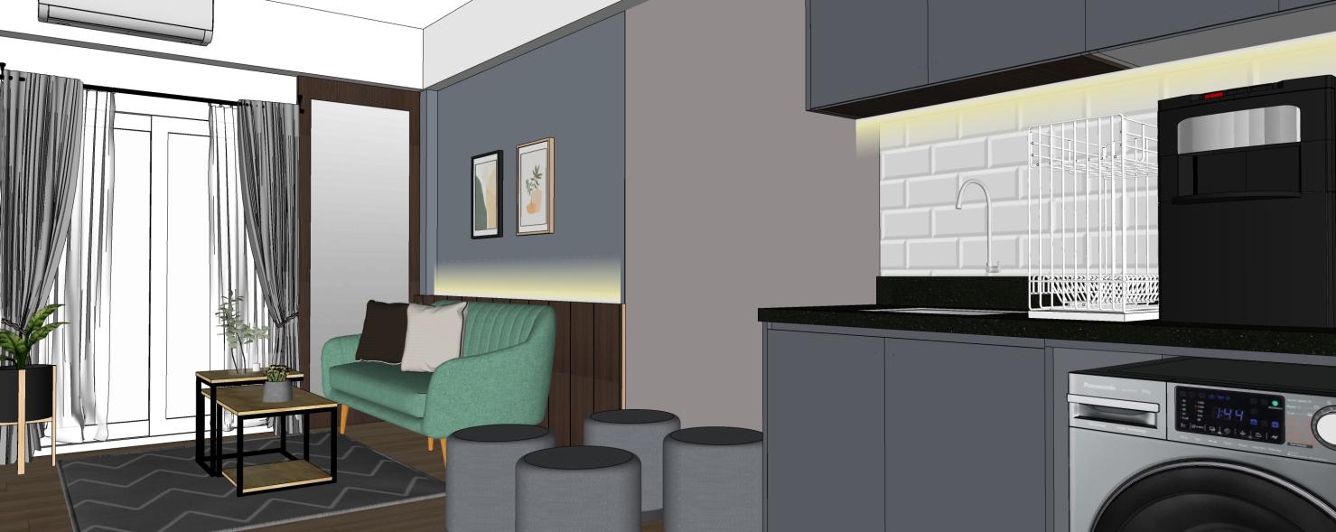 The client requested for a modern and minimalist design concept. Cozy and warming atmosphere from the wood accents will give people comfort.