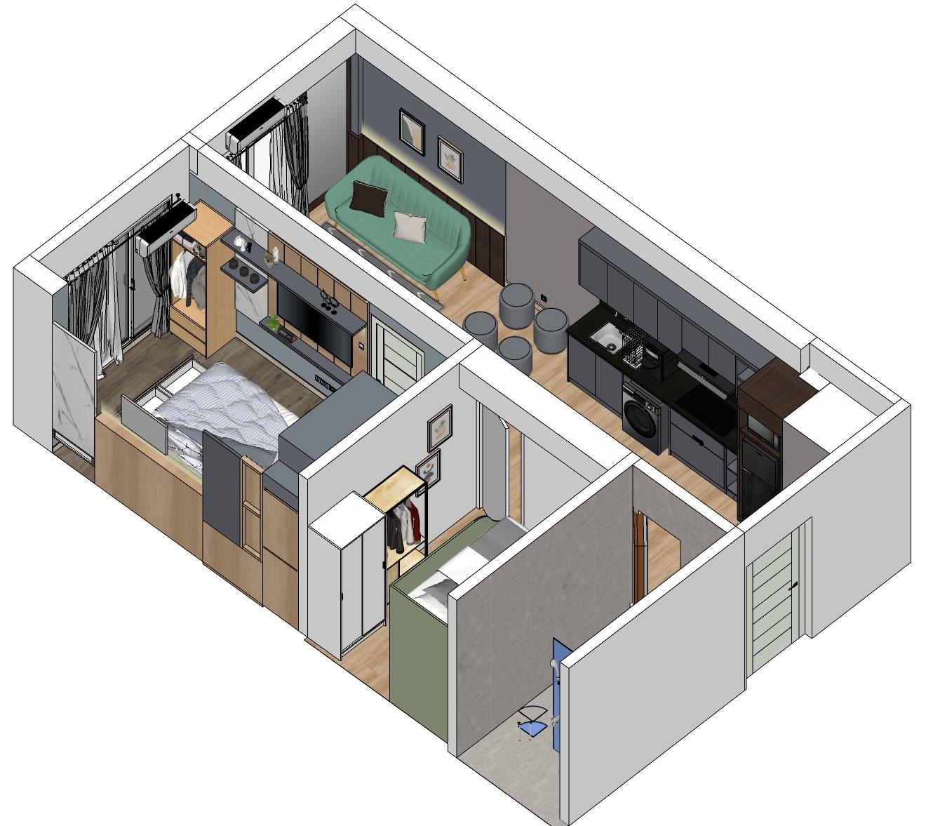 COZY APARTMENTS THAT MAXIMIZE A SMALL SPACE. AREA: