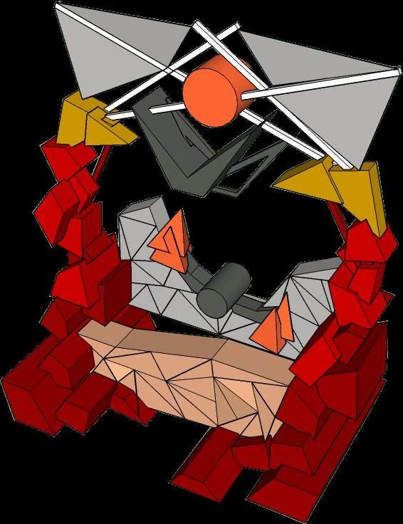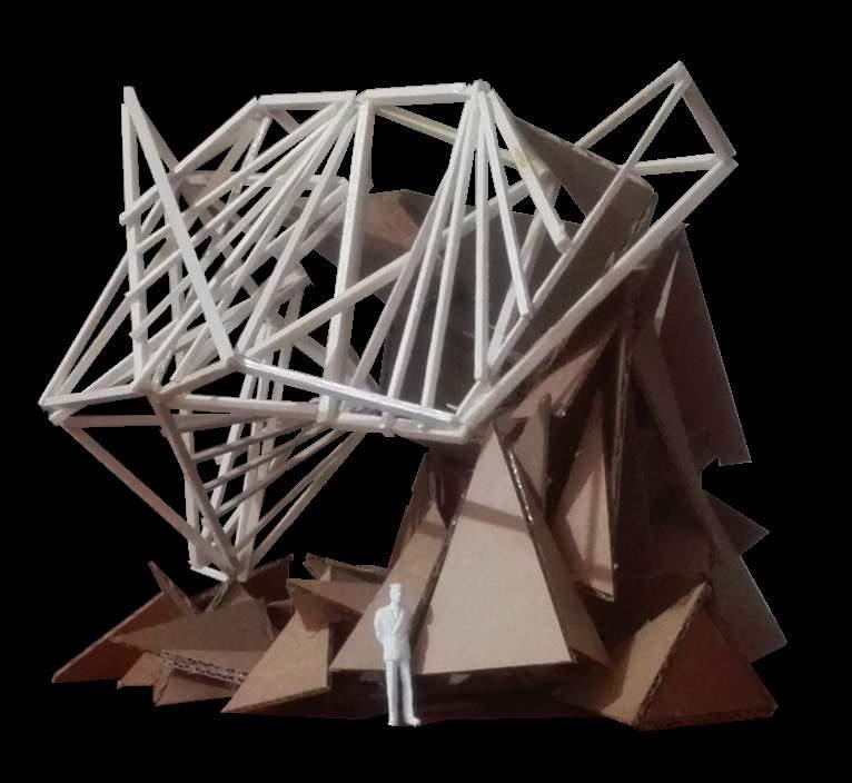 a partir de un personaje (Kylo Ren de Star Wars), se elabora un guión apropiado según sus características y personalidad, y con ello se genera un único espacio. Representa un espacio relativamente amplio pero protegido. Los triángulos se aplican como un aspecto defensivo y desordenado del refugio.