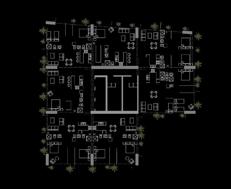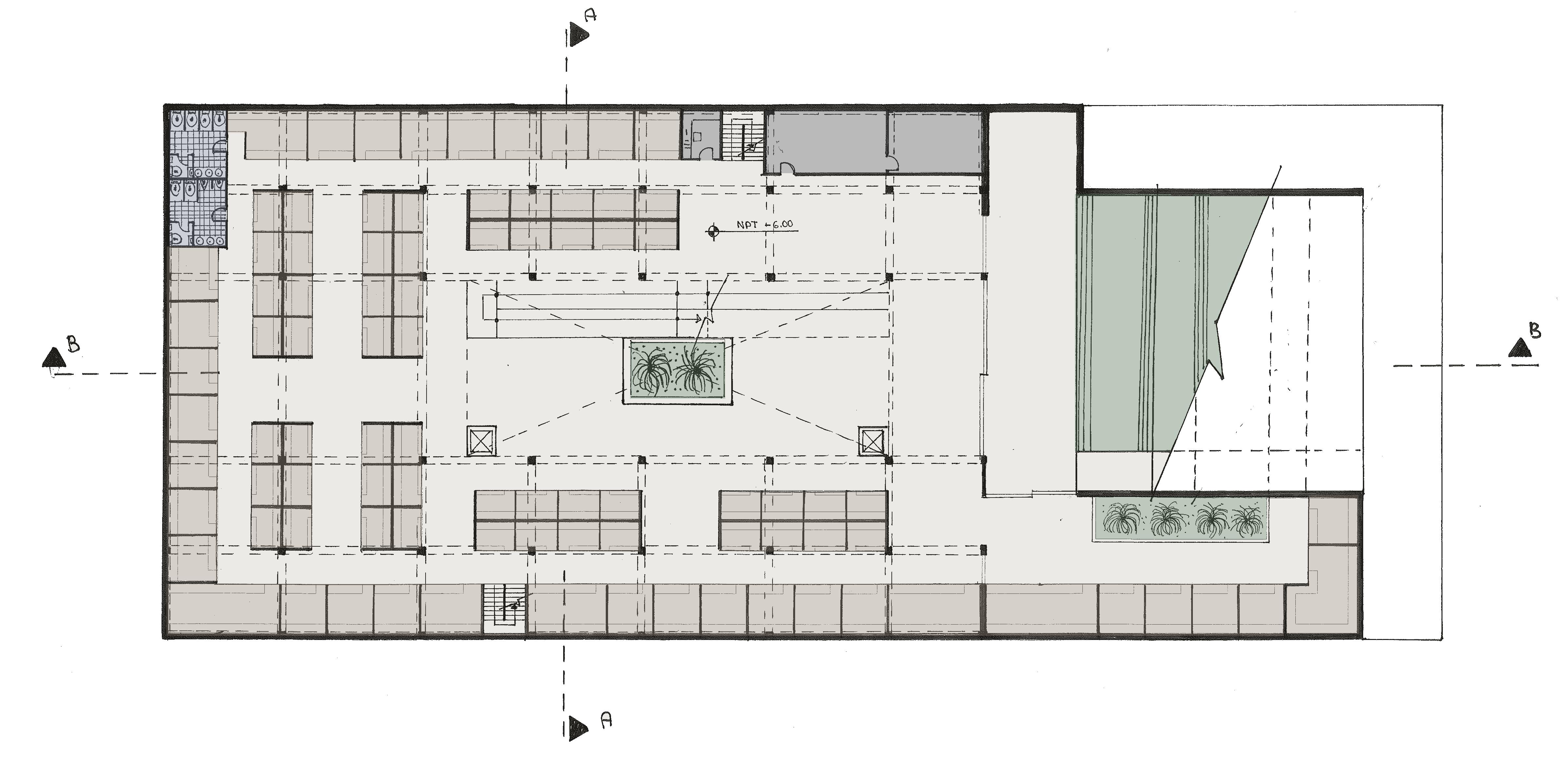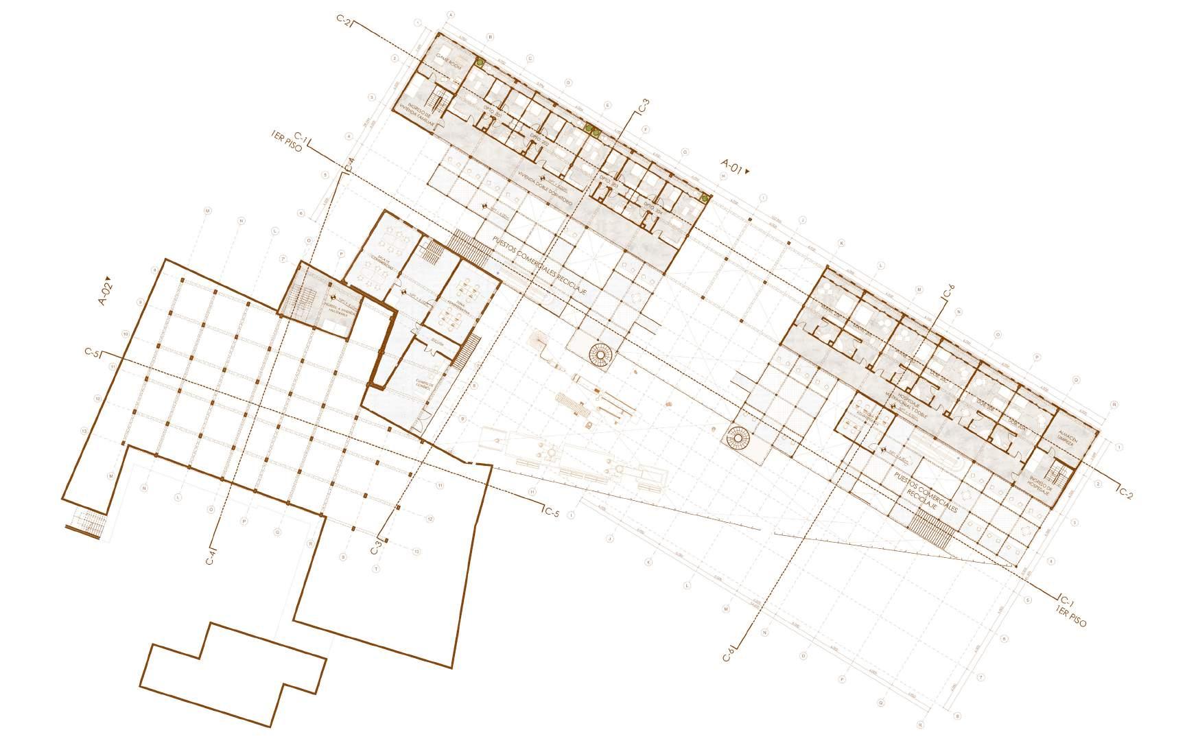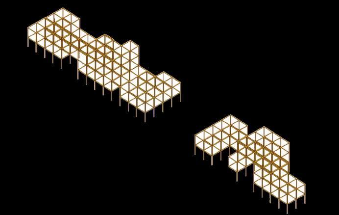 las plantas reflejan la intención de modularidad en el proyecto, con múltiples referencias a la regularidad que se encuentra en las luces de igual distancia; así como las múltiples posibilidades de diseño que permite esta estructura.