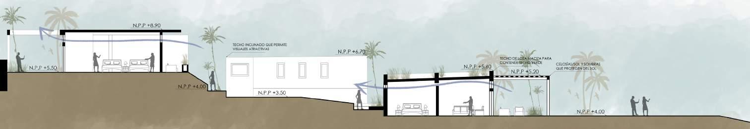 acoger al usuario es lo más importante. el eco - lodge contiene dentro de sus instalaciones áreas de servicio, de administración, de hospedaje y zonas de uso complementario.