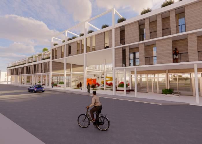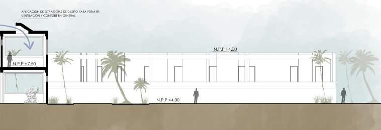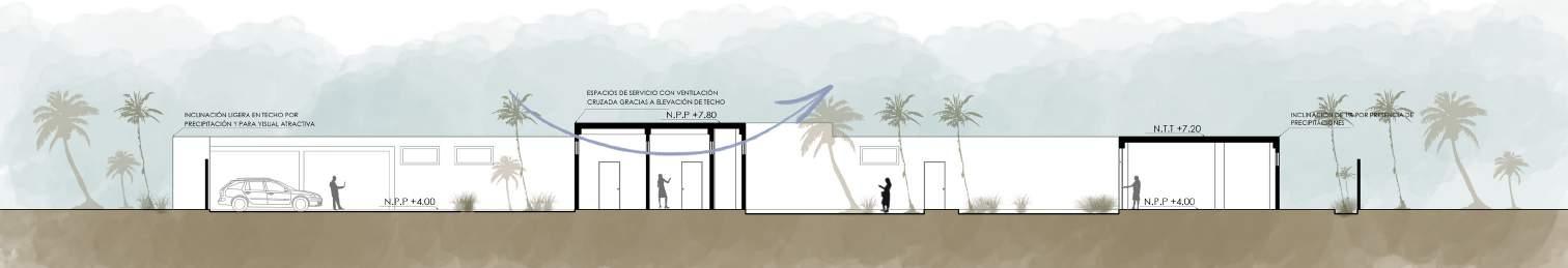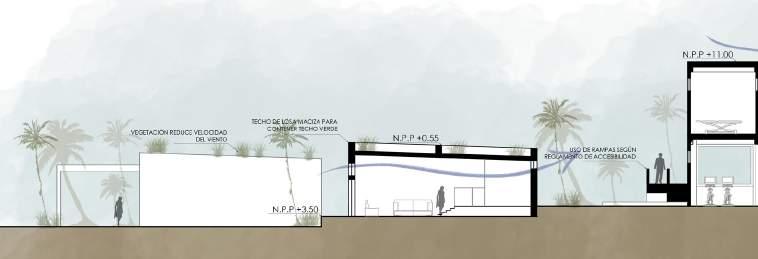 el proyecto responde a las necesidades contextuales de la zona, como son ciertos parámetros urbanísticos y climáticos, así como la necesidad de un acceso directo a la carretera principal de El Chaco.