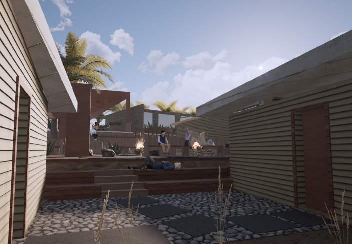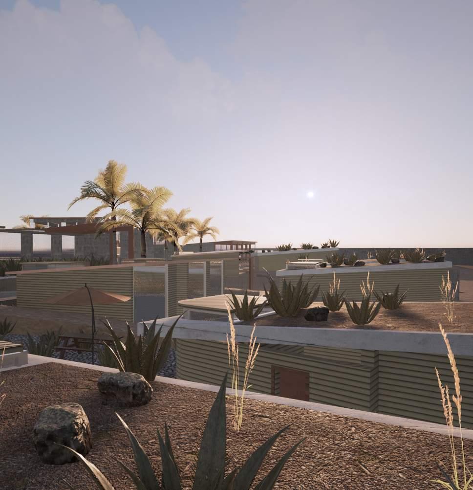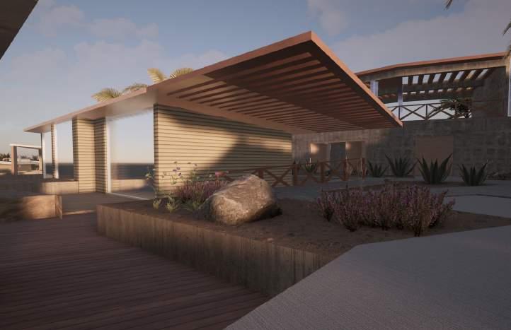 estos espacios se distribuyen de manera ordenada y armoniosa en el entorno, logrando el objetivo de ubicarse respetuosamente sobre las arenas de Paracas.