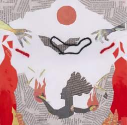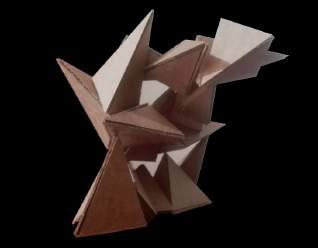 a partir de un collage basado en una pieza de arte (Sueño de Fuego de Venancio Shinki), se elabora la extrusión uniforme del collage. El diseño debe presentar balance y uniformidad. El producto final es una extrusión adecuada con buen manejo del vacío y contiene diseño geométrico proporcionado.