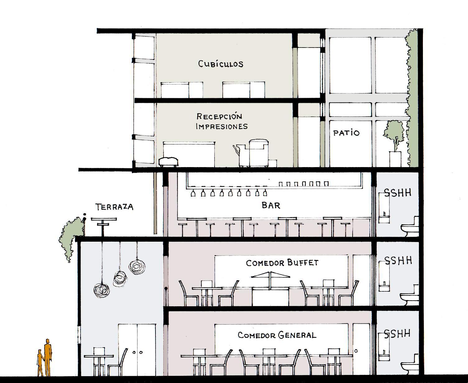 al considerar el entorno como un elemento importante y según un estudio del sitio, se pueden crear focos importantes dentro de él. en este sector de jesús maría, abunda el comercio minorista y los restaurantes locales; por lo que la necesidad de un mercado zonal adecuadamente equipado es imperativo y la oportunidad para crear un restaurante popular es provechosa.