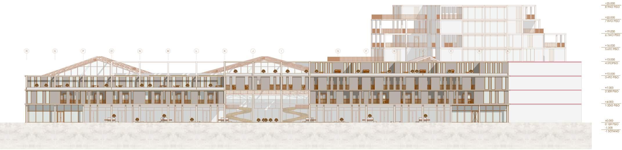 esta intención se comparte, además, en la propuesta de vivienda multifamily en lo que sería el edificio pre - existente Lindley. no solo ofrecería una posible vivienda para el trabajador, sino también una oferta de Air-BnB’s próximos a unas de las zonas más populares del Rímac; esto con el fin de fomentar el turismo y aportar a la comunidad.