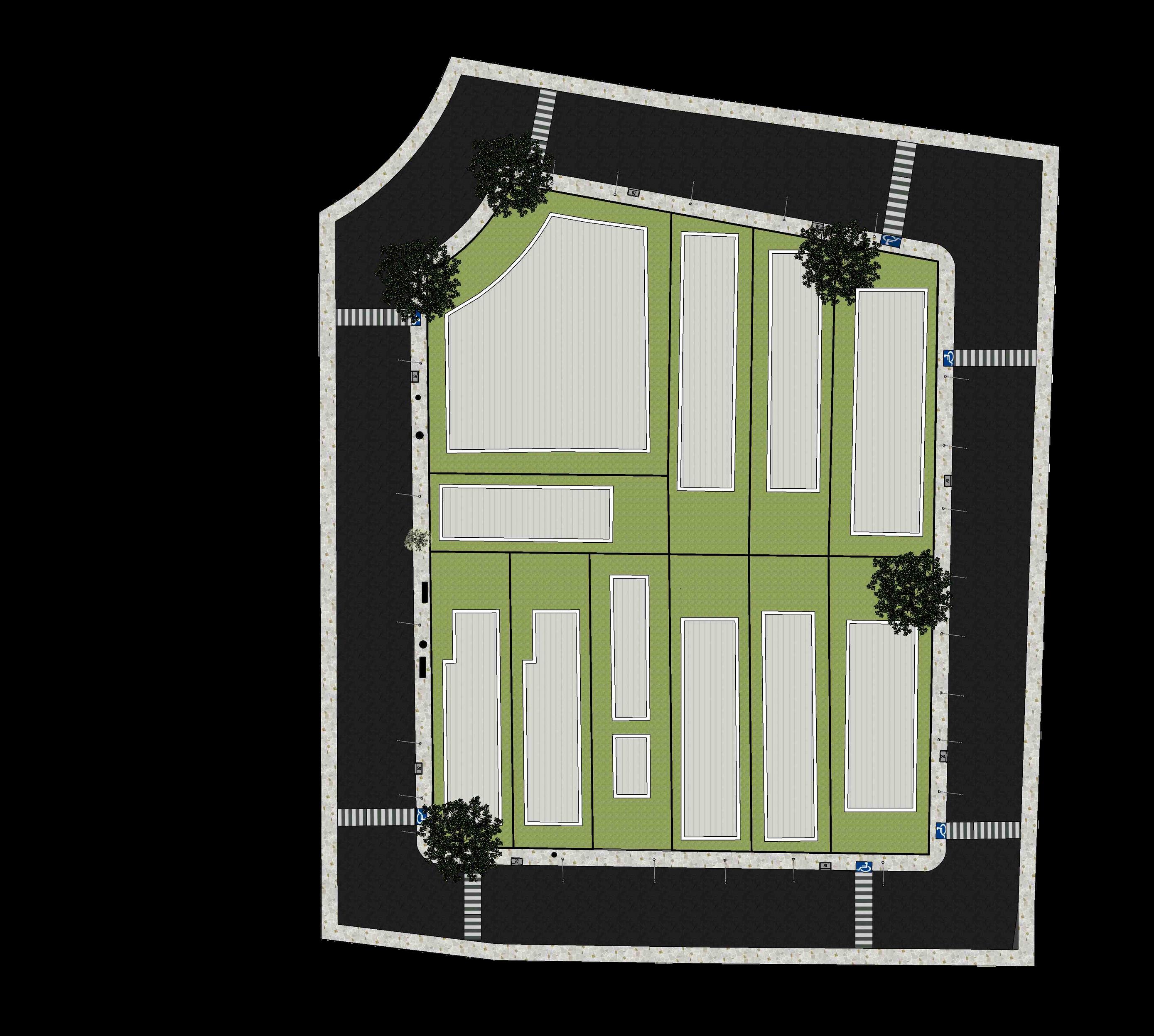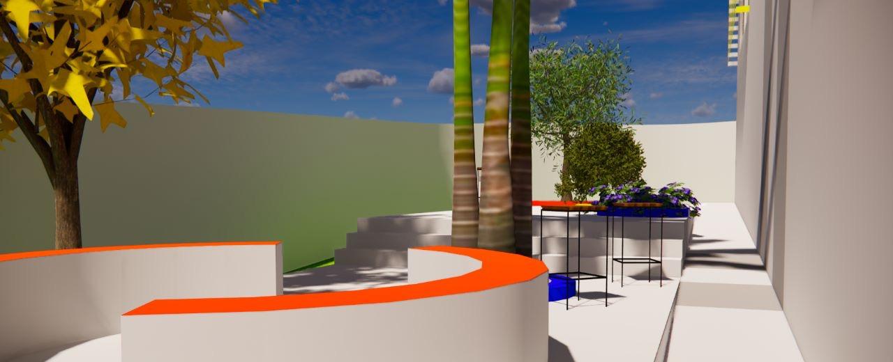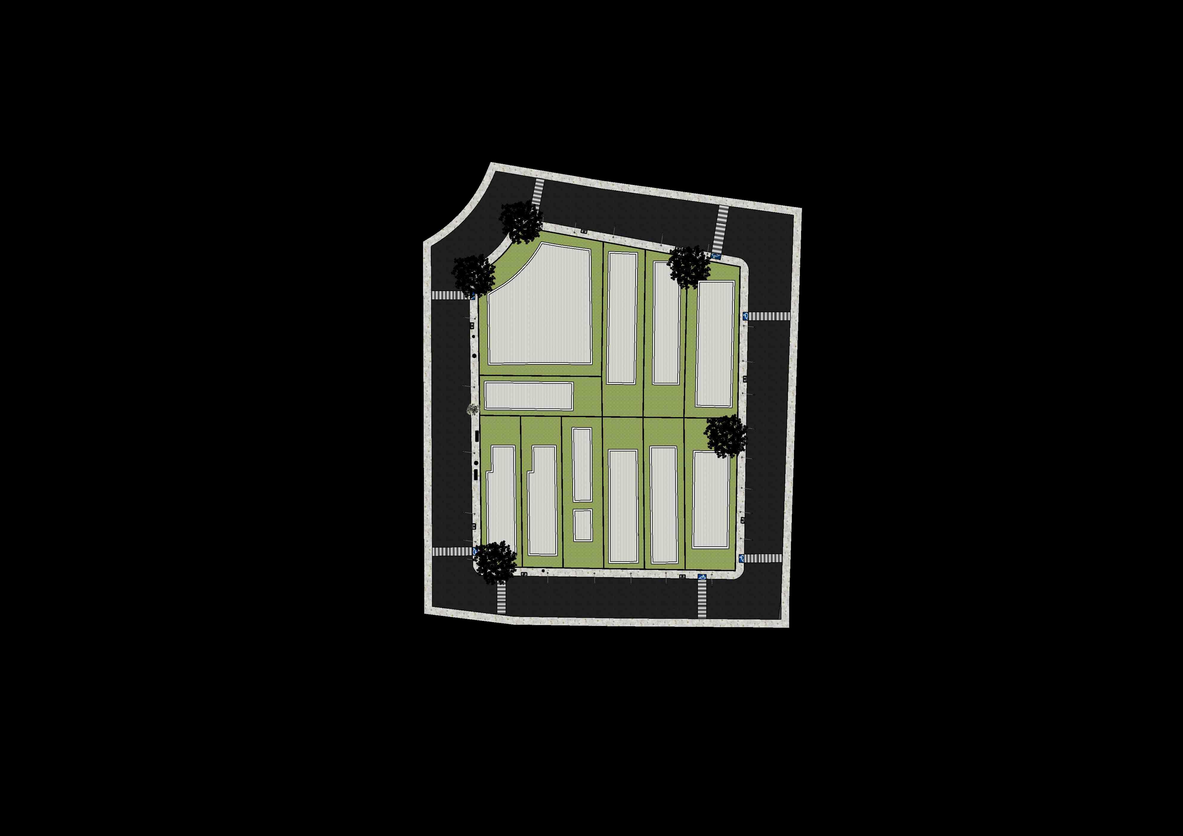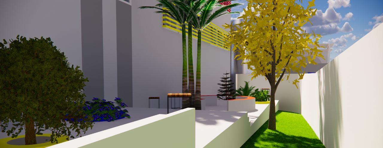 A quadra 07 foi pensada tanto para os ocupantes, quanto para os pedestres que passariam por perto. Com uma arborização para o conforto ambiental, equipamentos urbanos como: bancos, lixeiras, e rampa para acessibilidade
