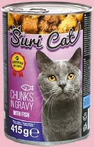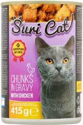 na 2.5.2025.: 0,90€ 0,90€ 0 75 €/kom SURI CAT Hrana za mačke perad/ govedina/riba 415g 1kg=1,81€