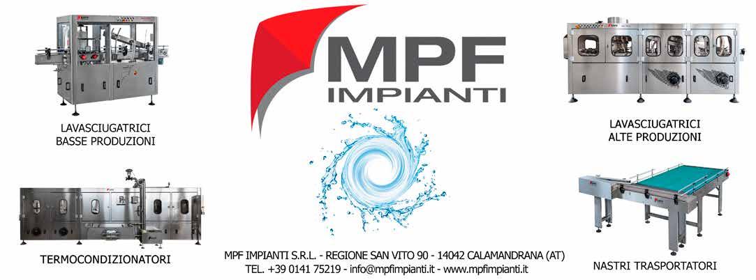 L’azienda MPF Impianti Srl con sede a Calamandrana, provincia di Asti, è leader nel settore enomeccanico per la produzione e fornitura di sistemi di trasporto interni, di macchinari atti al trattamento esterno bottiglie come lava-asciugatrici, tunnel di asciugatura. La gamma include inoltre termocondizionatori (FI-FO e a massa) progettati appositamente per eliminare i problemi di condensa che si forma sulla superfice delle bottiglie quando si effettua il riempimento a freddo, in modo da garantire di seguito la perfetta etichettatura. La MPF Impianti Srl è in grado di garantire una pronta risposta nel caso di richieste con consegne in tempi rapidi avendo a disposizione un proprio taglio laser all’interno dell’officina per la produzione di tutta