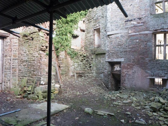 Derelict condition of the Jacobean castle house and medieval keep before works