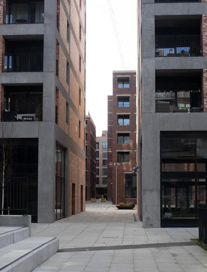 that masterplanning, often with a mix of typologies, can have on achieving different densities. At St Andrews for example, which achieved a density of 295 DpHa, the development included three urban blocks, and two tall towers. The inclusion of two towers inevitably increased the density of the scheme whilst still allowing for the inclusion of a large public green space. If instead there was an additional urban block and no towers, the density would have inevitably been less, and the large public place would have been lost. The same could be said for the Collvile Estate. Though the quality of playspace at ground floor could be questioned, the case study highlighted the principles of how a tower typology, with its small footprint can offer opportunities for larger expanses of public realm at the base. Within this example, the two towers act as a gateway into the wider development of the Collville Estate.