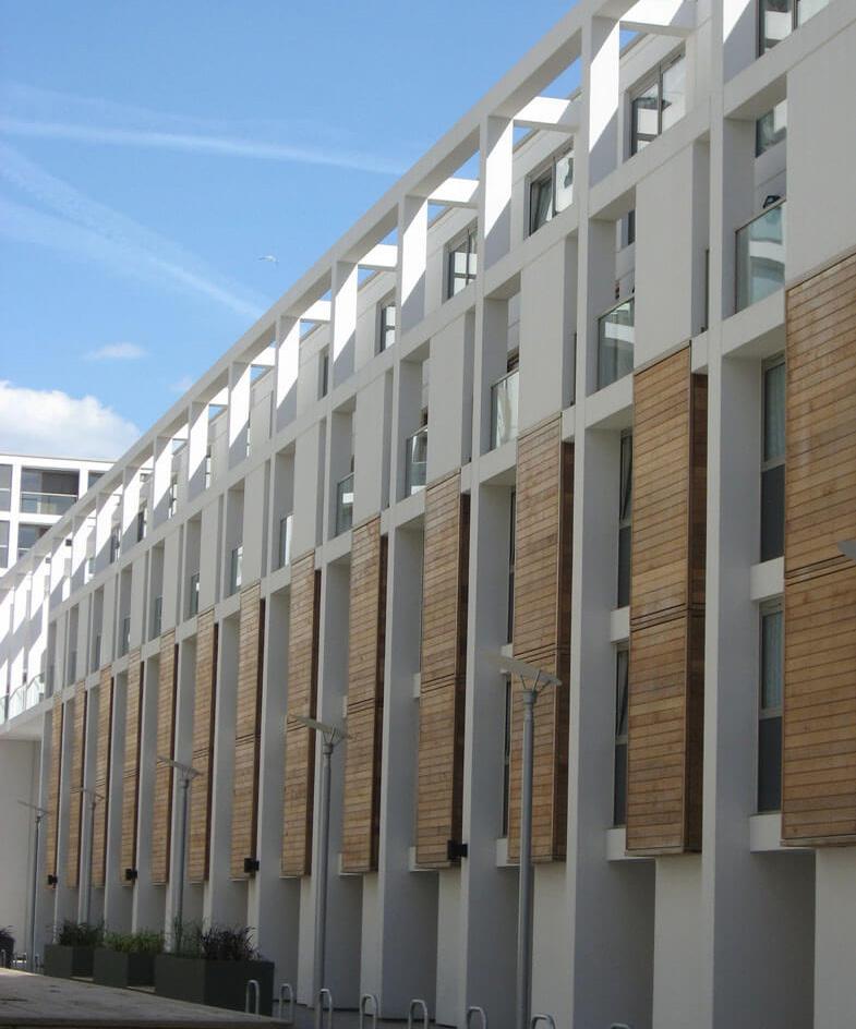The development’s residential units are all designed to Code for Sustainable Homes level 3. It is a ‘low carbon’ scheme which is defined as a 37.5% improvement below the Target Emission Rate as determined by the 2006 building regulations. Within the scheme, over 20% of the energy demand is met by biomass boilers. The development also utilises rainwater harvesting which collects water from roof space and stores it on site. Where roof space is not used as private or communal amenity space, they are largely green and brown roofs to enhance the ecology of the area.