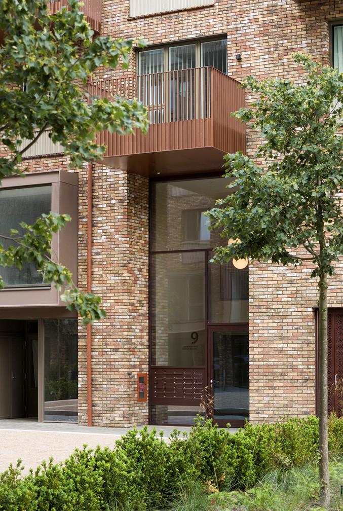 Notably, the scheme integrates a number of measures to improve flexibility and the ability for future adaptation. Within all dwellings, movable partitions, and soft spots within walls allow for changing layouts of rooms and access. Furthermore, dwellings at ground floor have higher floor to ceiling heights to offer the opportunity for a future use change from residential to commercial.