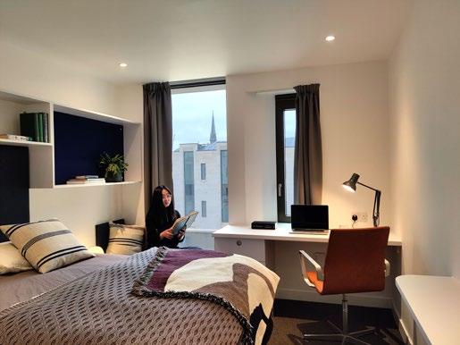 The building brings together teaching, dining, NHS healthcare, retail, socialising, faith spaces, cafe, exhibition, roof terraces, common rooms, wellbeing, study and residential, doubling the accommodation on the site and bringing together distinct functions in a complementary way.