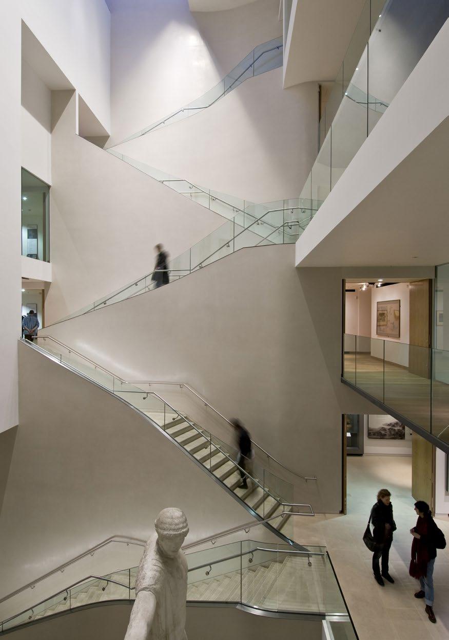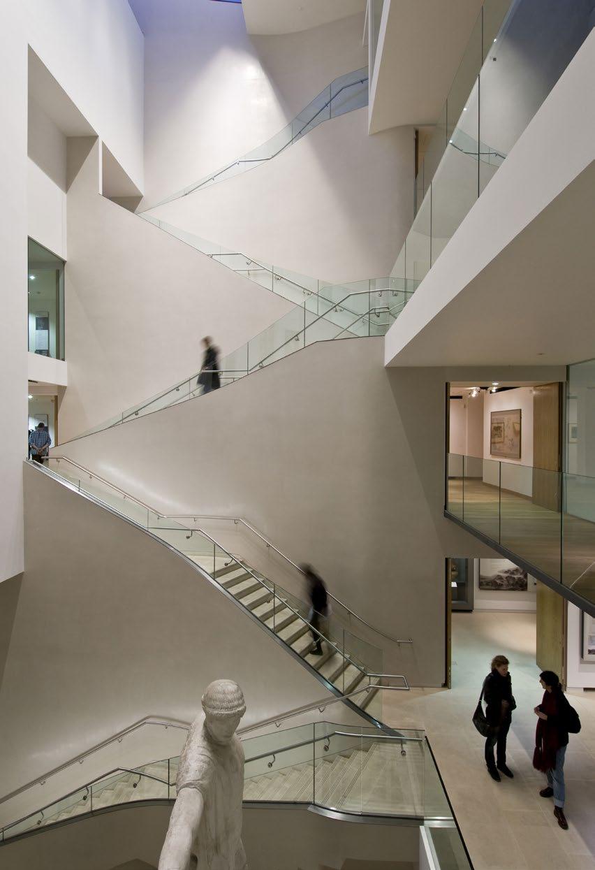 “This building clears the bar by a mile to give a world-class institution a worthy new home. Entered through the Cockerell façade into a day-lit atrium, which is modest in plan yet dramatic in section, rising through six floors with a subtly curved staircase cascading down one wall, the atrium unifies the museum. The route navigates its way through 39 galleries with a clever interleaving of double and single height spaces creating a rich spatial journey.”