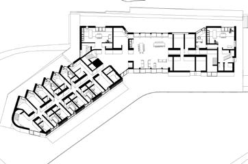 Illustration of how the level change is used to maximise potential of the new building and how landscape integrates the building into it’s setting